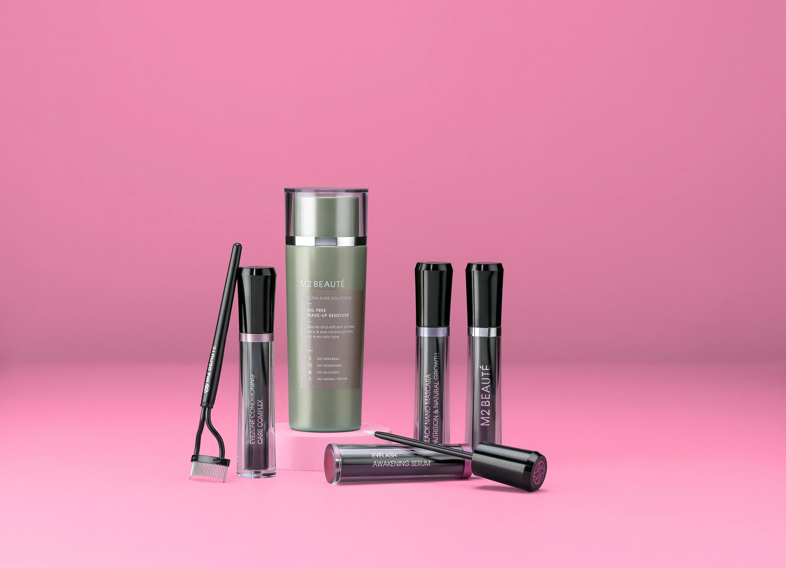 Christmas cosmetics campaing, MATAS, pink background, cosmetics retouch