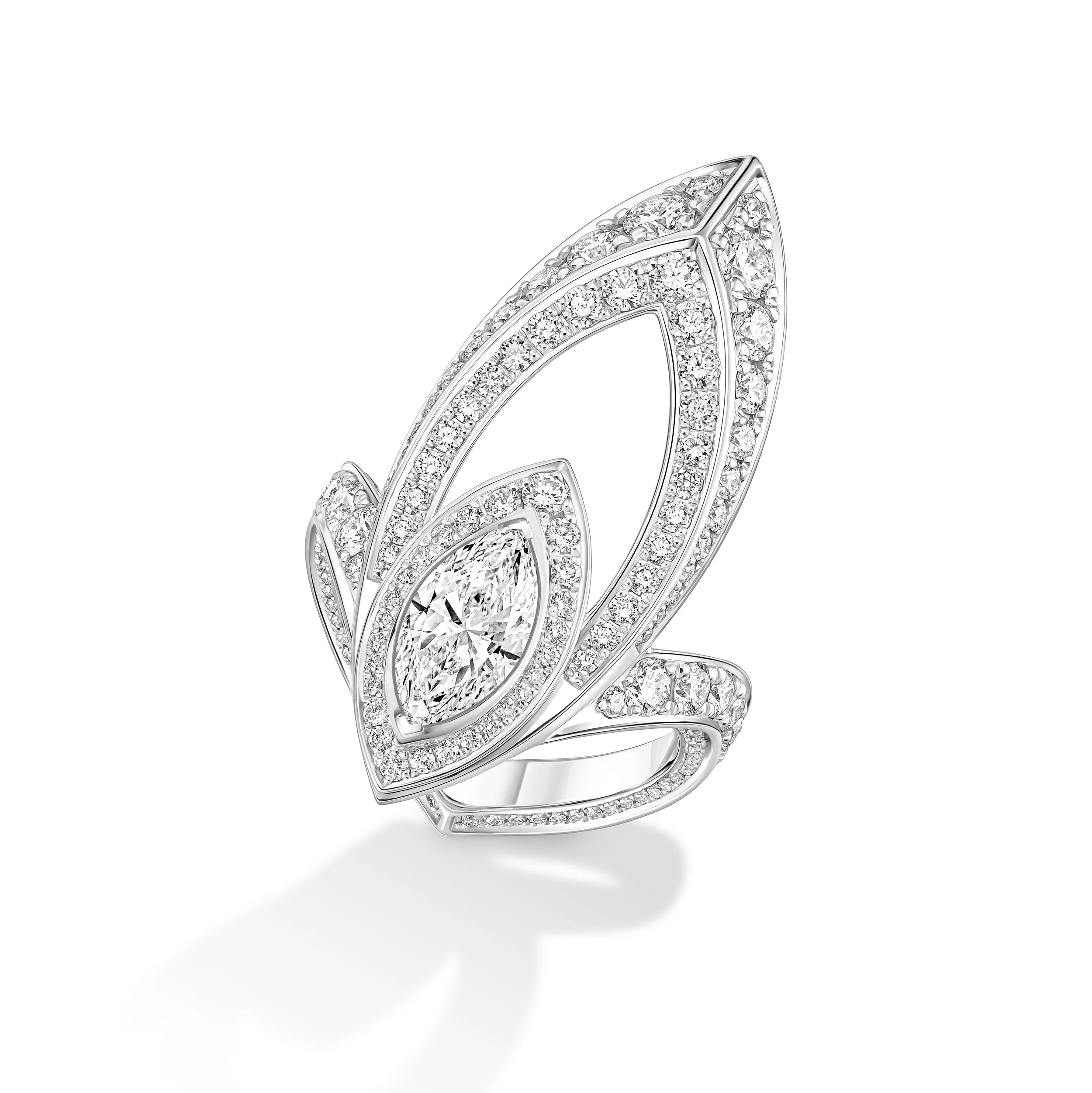 Messika ring with diamonds, white gold, ecommerce retouch, packshot retouch, high end retouch